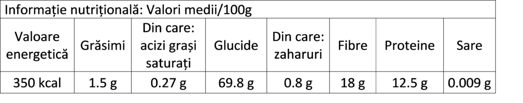 Poate conține urme de: migdale, alune, arahide, nuci, muștar, semințe de susan, gluten.