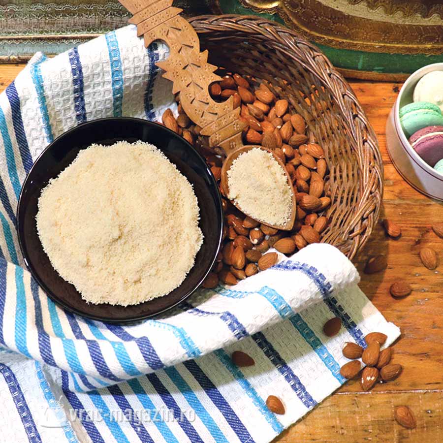 Făina de migdale are o textură fină și o ușoară și plăcută aromă de nuci, care o face ideală în prepararea dulciurilor. Este un ingredient foarte apreciat în rândul cofetarilor din întreaga lume.
