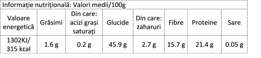 Poate conține urme de: migdale, alune, arahide, nuci, muștar, semințe de susan, gluten.