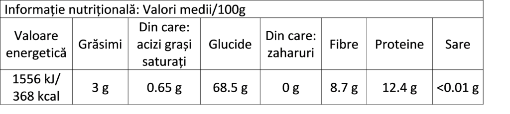 Poate conține urme de: migdale, alune, arahide, nuci, muștar, semințe de susan, gluten.