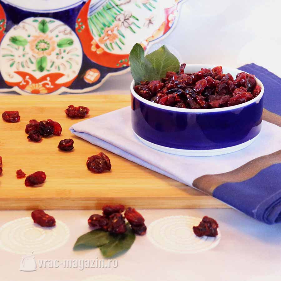 Merișorii prin deshidratare pierd o parte din vitamine, dar își păstrează conținutul în minerale, și nutrienți necesari organismului. Se pot consuma ca atare, sau în salate de fructe și preparate de patiserie.